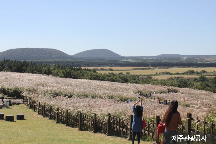 제주의 동쪽 땅끝이라는 뜻을 지닌 지미봉 위에서 360도 어디 한 곳 가릴 데 없이 제주가 펼쳐진다. 시흥초등학교, 말미오름, 당근밭, 감자밭이 한눈에 들어오고 한 켠에 성산일출봉이 떠있는 푸른 제주의 동쪽 바다와 용눈이오름 다랑쉬오름이 있는 제주의 동부 오름 군락이 밀려든다. 자료출처 : 대한민국 구석구석(http://korean.visitkorea.or.kr) 펜션에서 약 12.7km, 차량 약 19분 거리